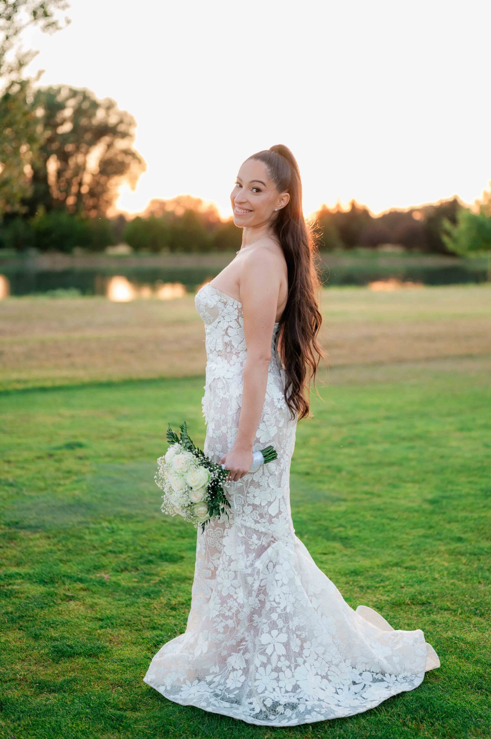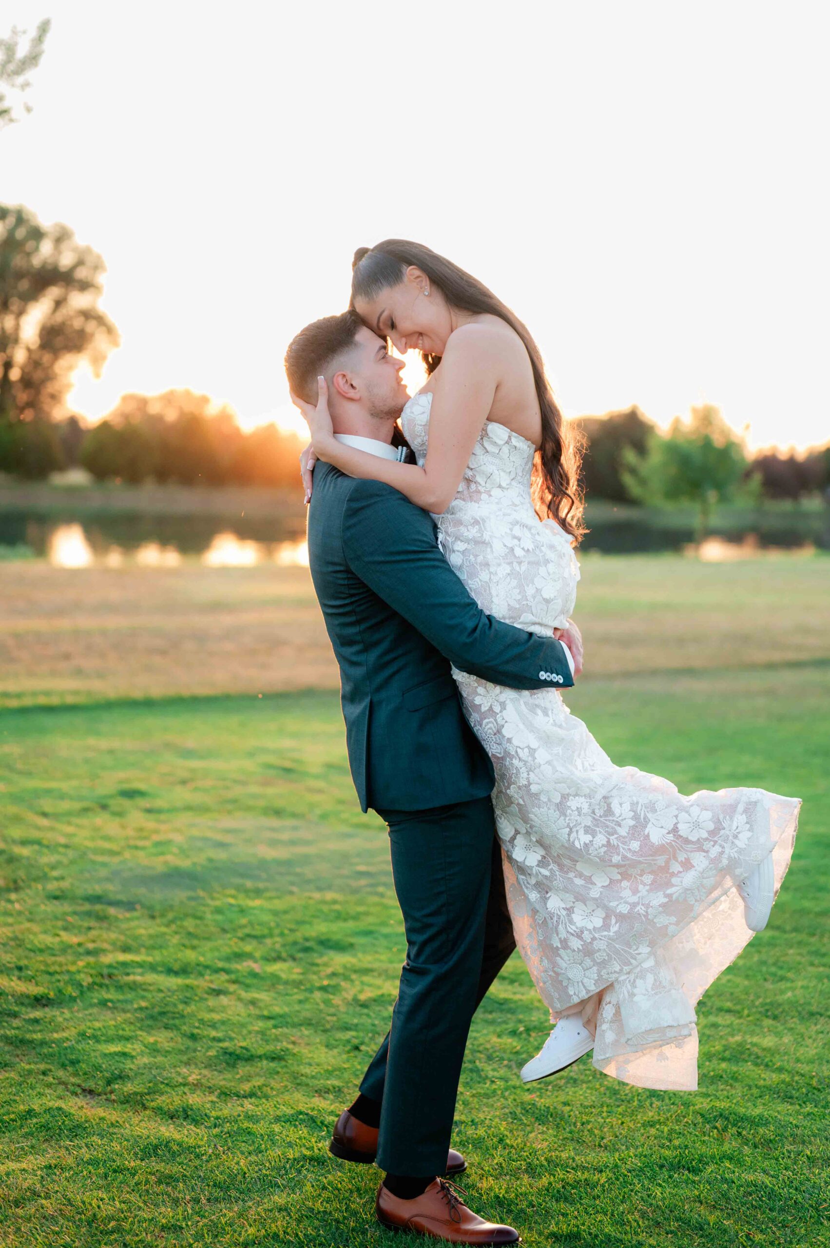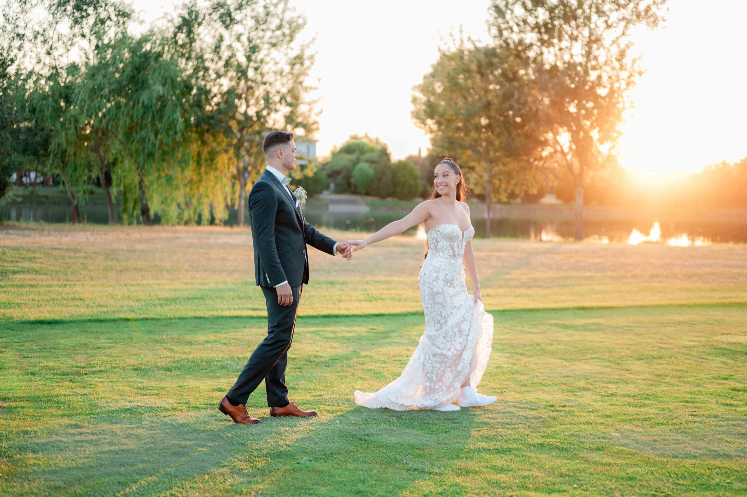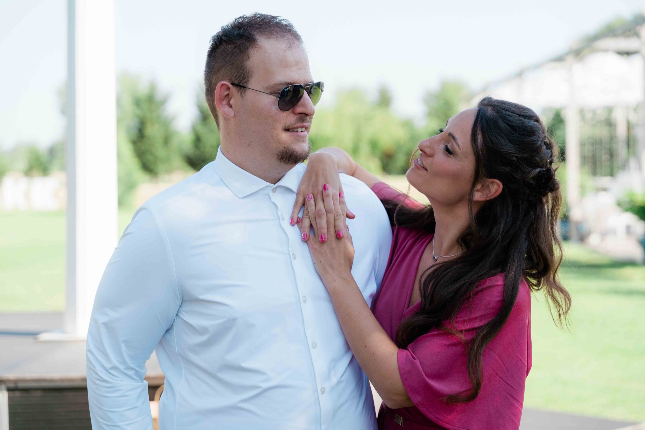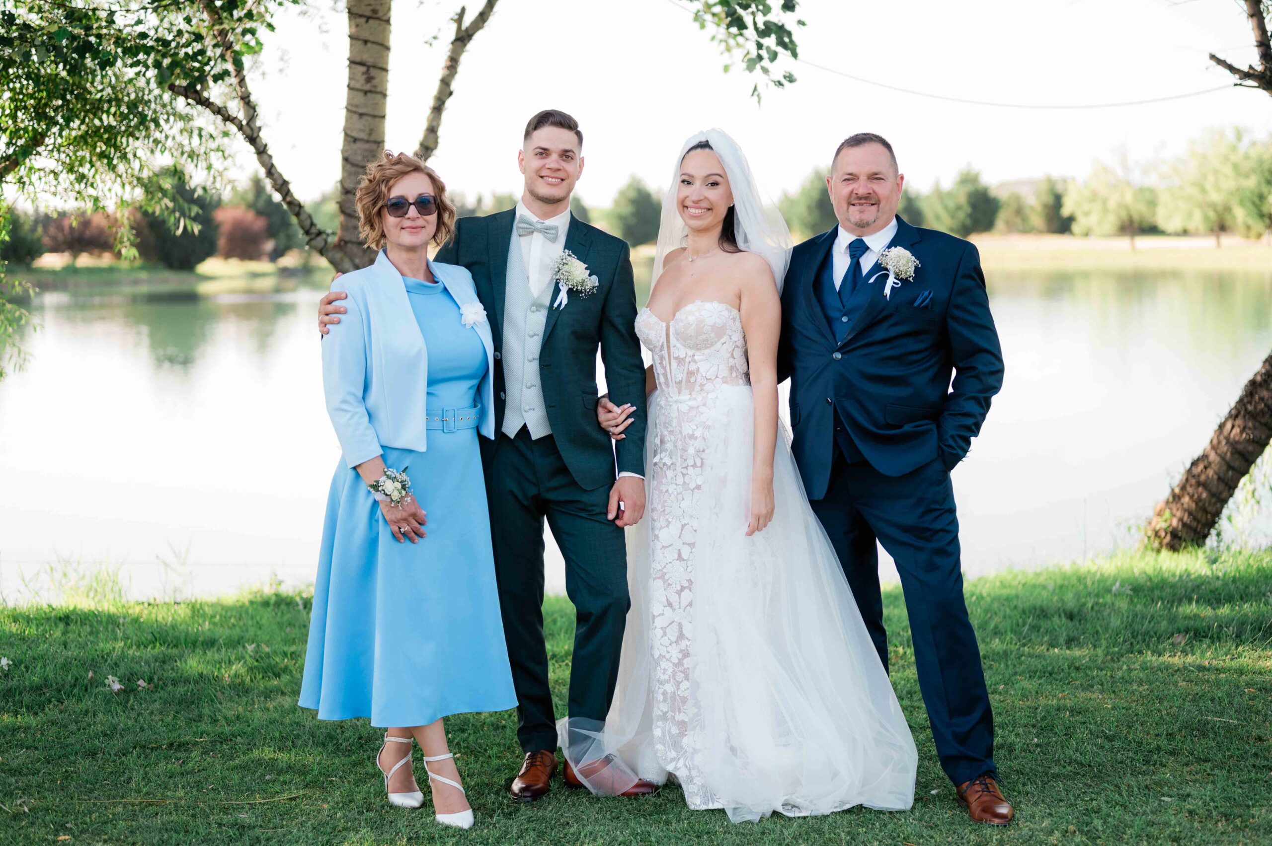 A kreatív portrék romantikus hangulatban készültek, a vízpart és a környező természet adta hátteret használva. Ezeken a képeken a pár visszafogottabb, csendesebb oldala is megjelent: egy-egy összebújás, lassabb mozdulat, nyugodtabb pillanat, ami jól ellenpontozta a nap pörgősebb részeit.