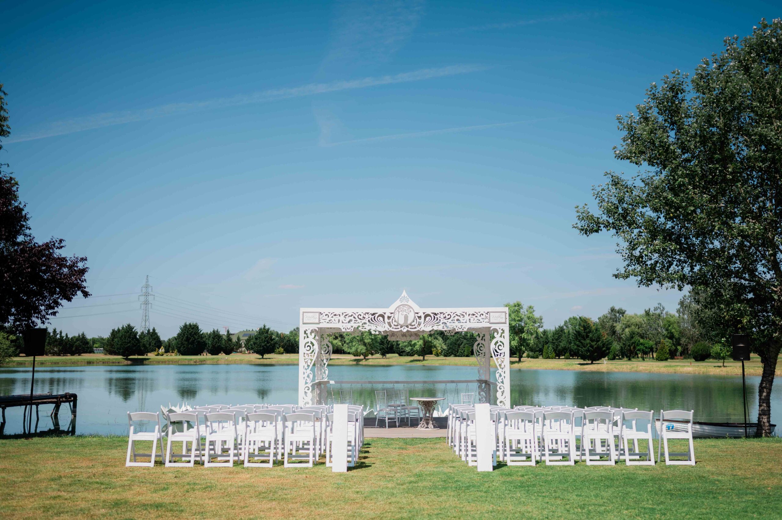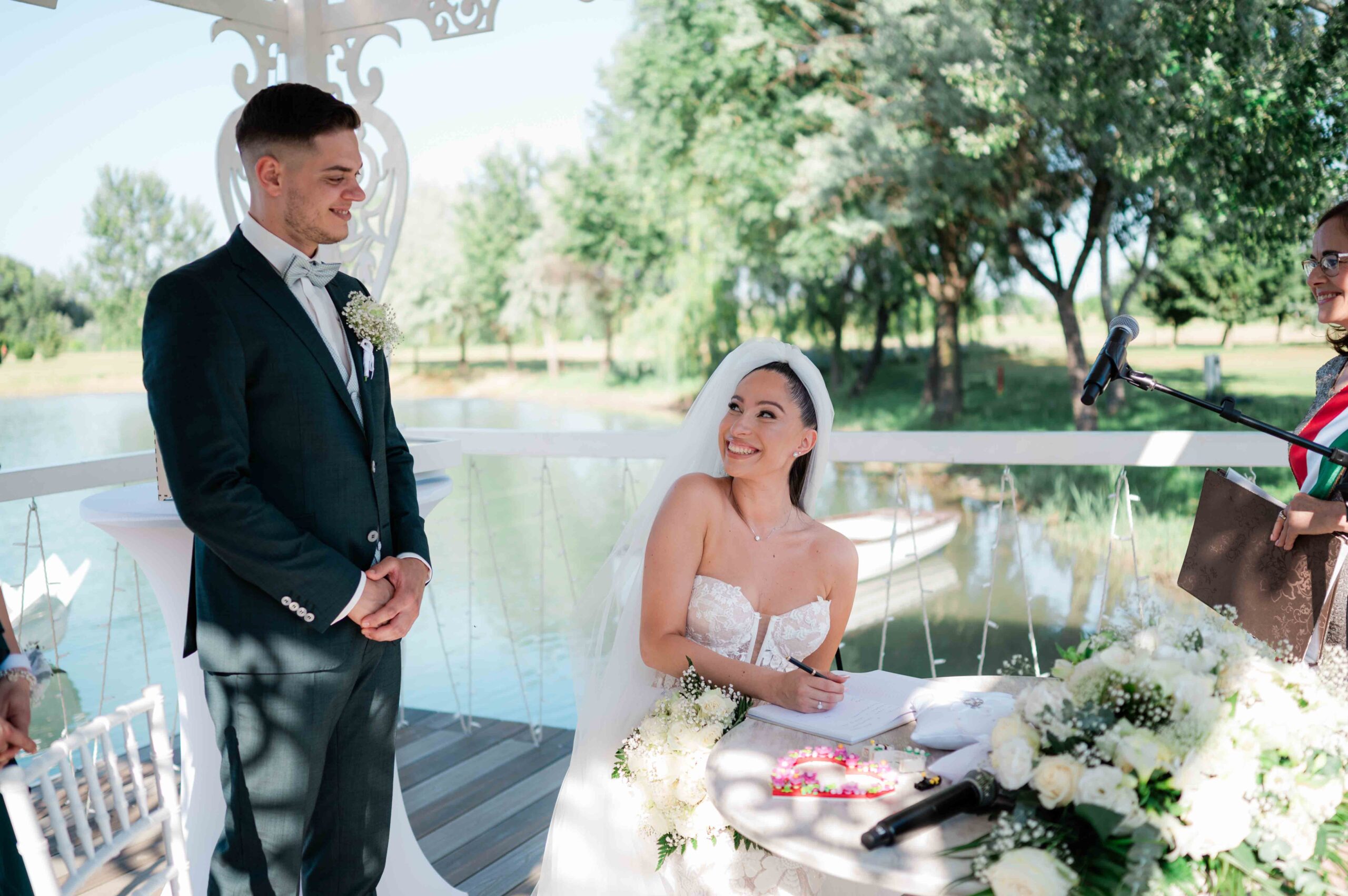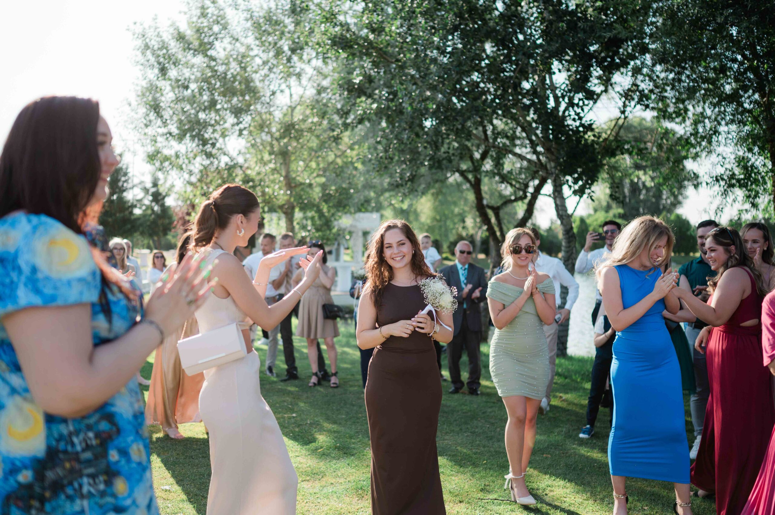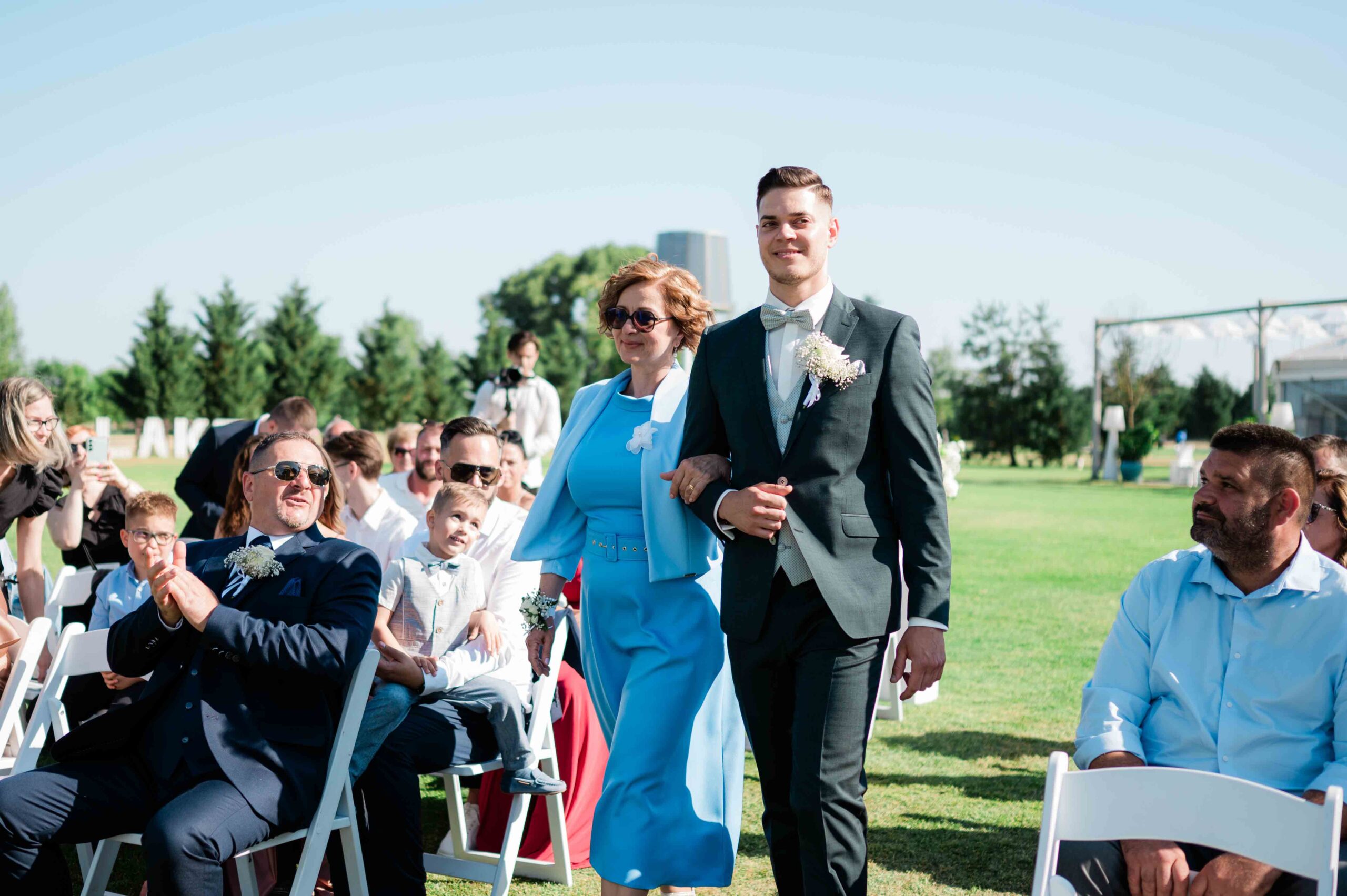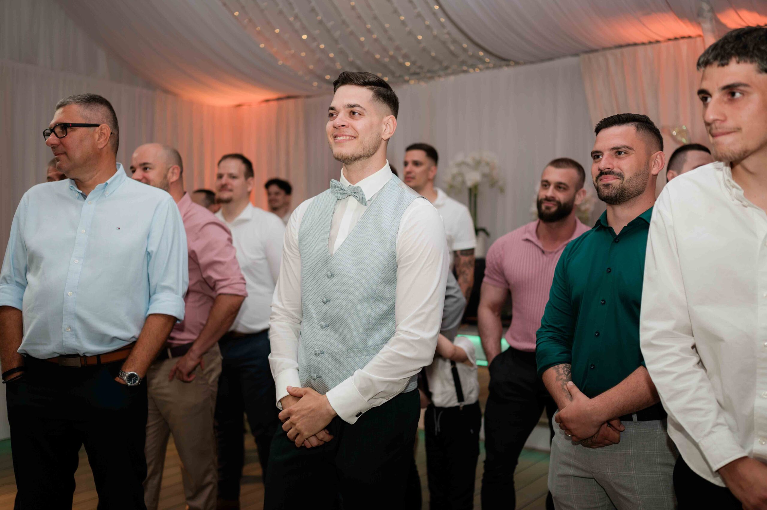 A ceremónia különleges környezetben zajlott, a Wedding Lake vízpartján. A vendégek klasszikus széksorokban helyezkedtek el, sokan közülük családtagok voltak. A szertartást végig élénk reakciók kísérték: taps, mosolyok, nevetések, amelyek jól visszaadták, mennyire közel áll egymáshoz ez a közösség.