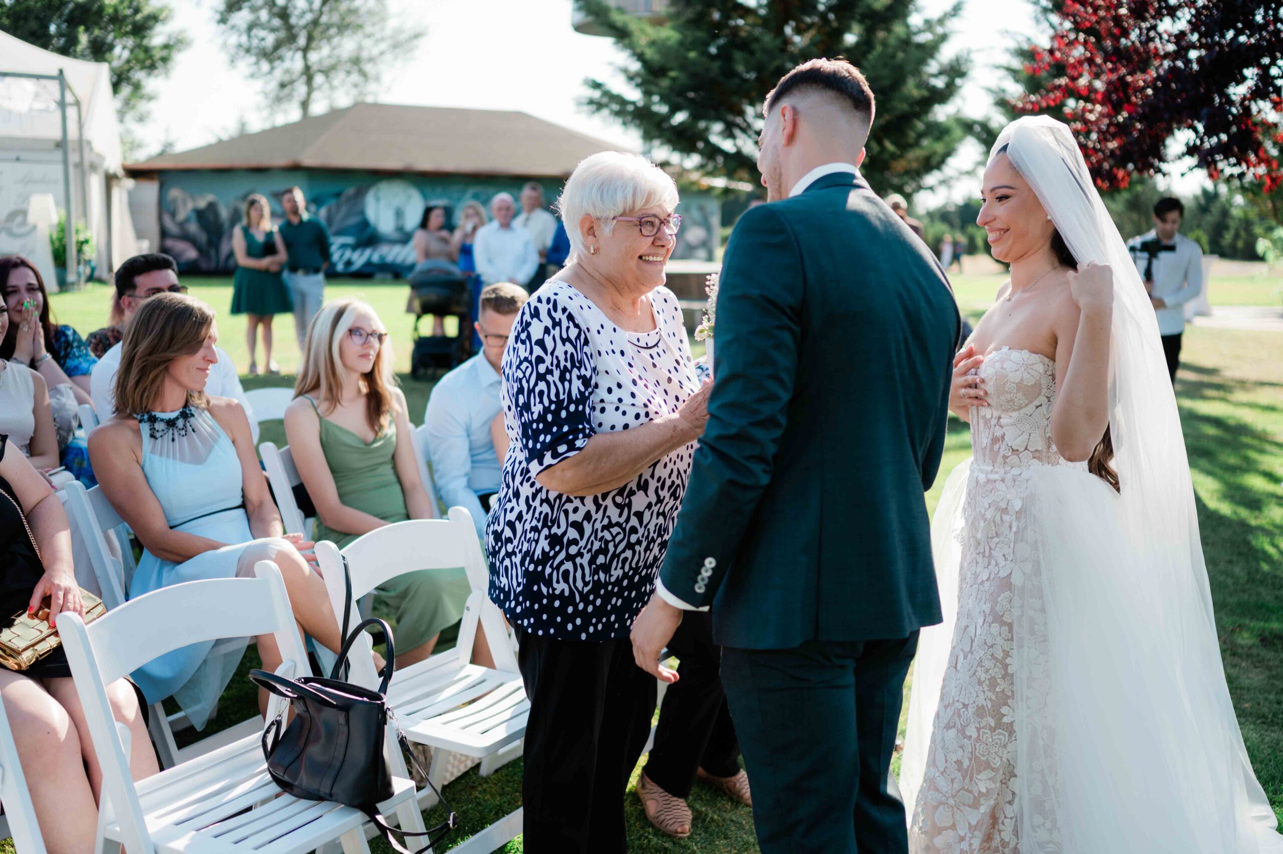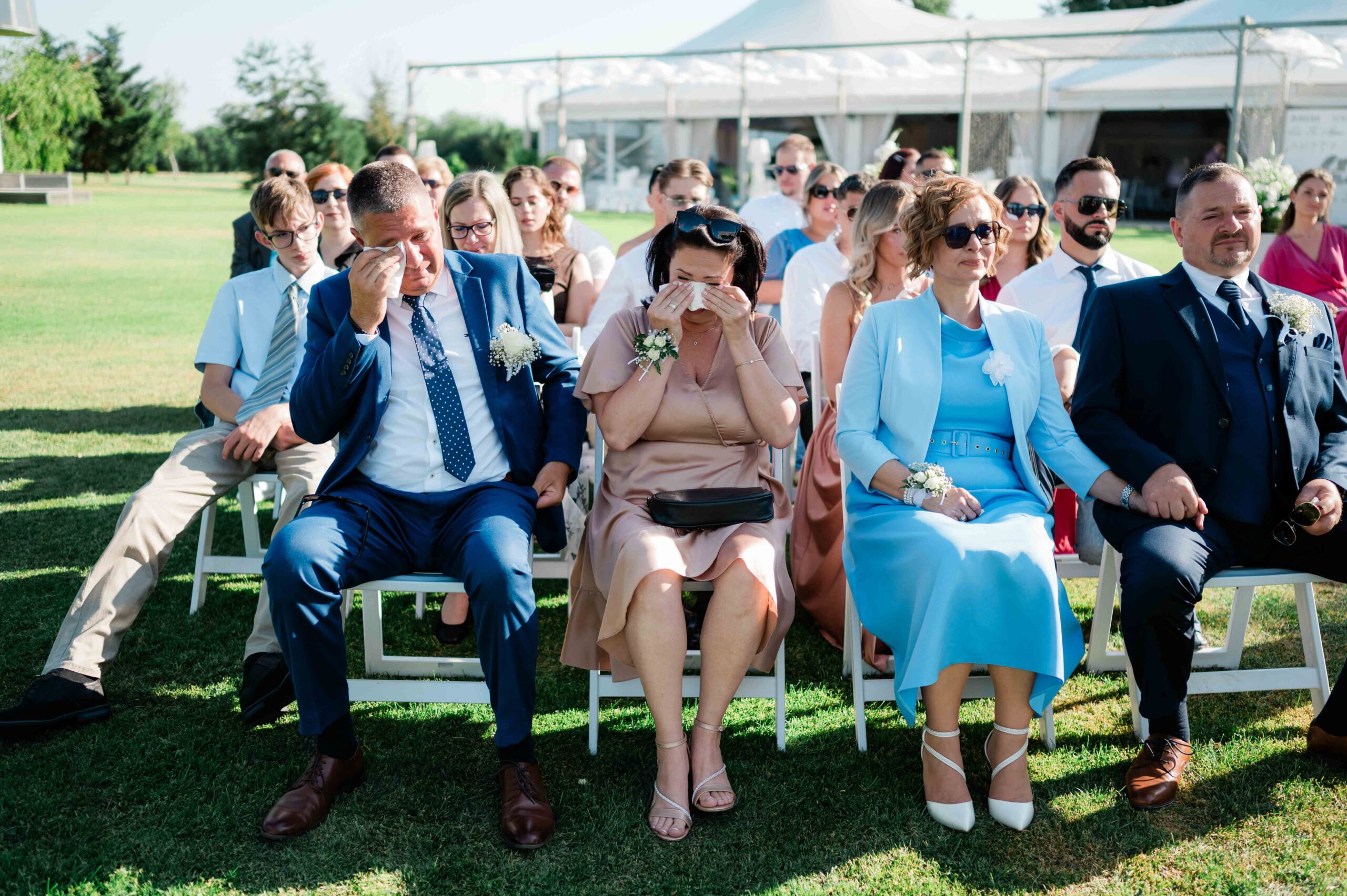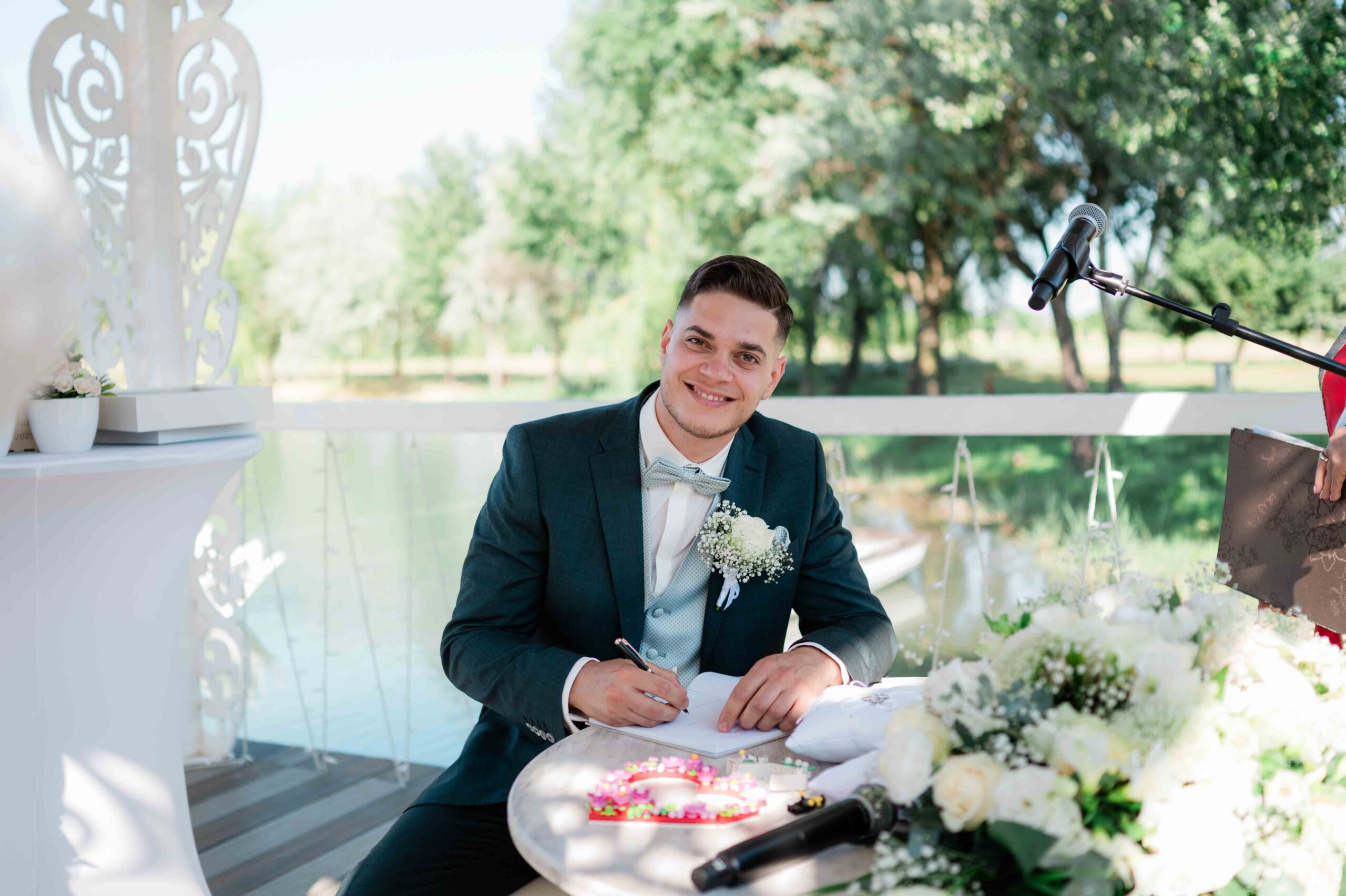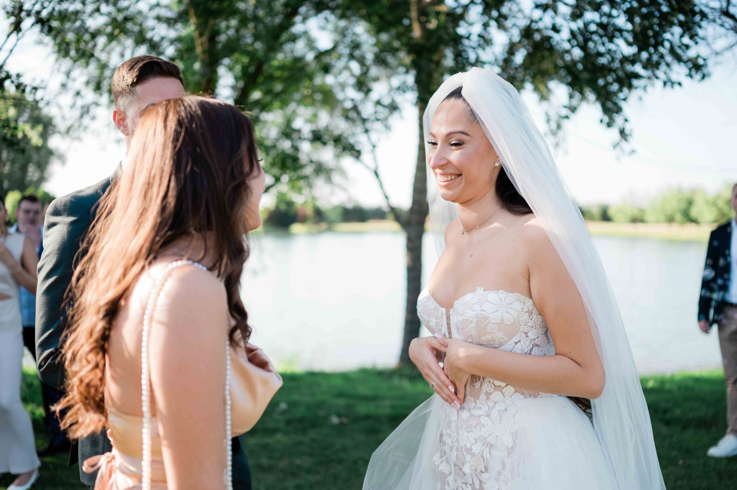 A ceremónia különleges környezetben zajlott, a Wedding Lake vízpartján. A vendégek klasszikus széksorokban helyezkedtek el, sokan közülük családtagok voltak. A szertartást végig élénk reakciók kísérték: taps, mosolyok, nevetések, amelyek jól visszaadták, mennyire közel áll egymáshoz ez a közösség.