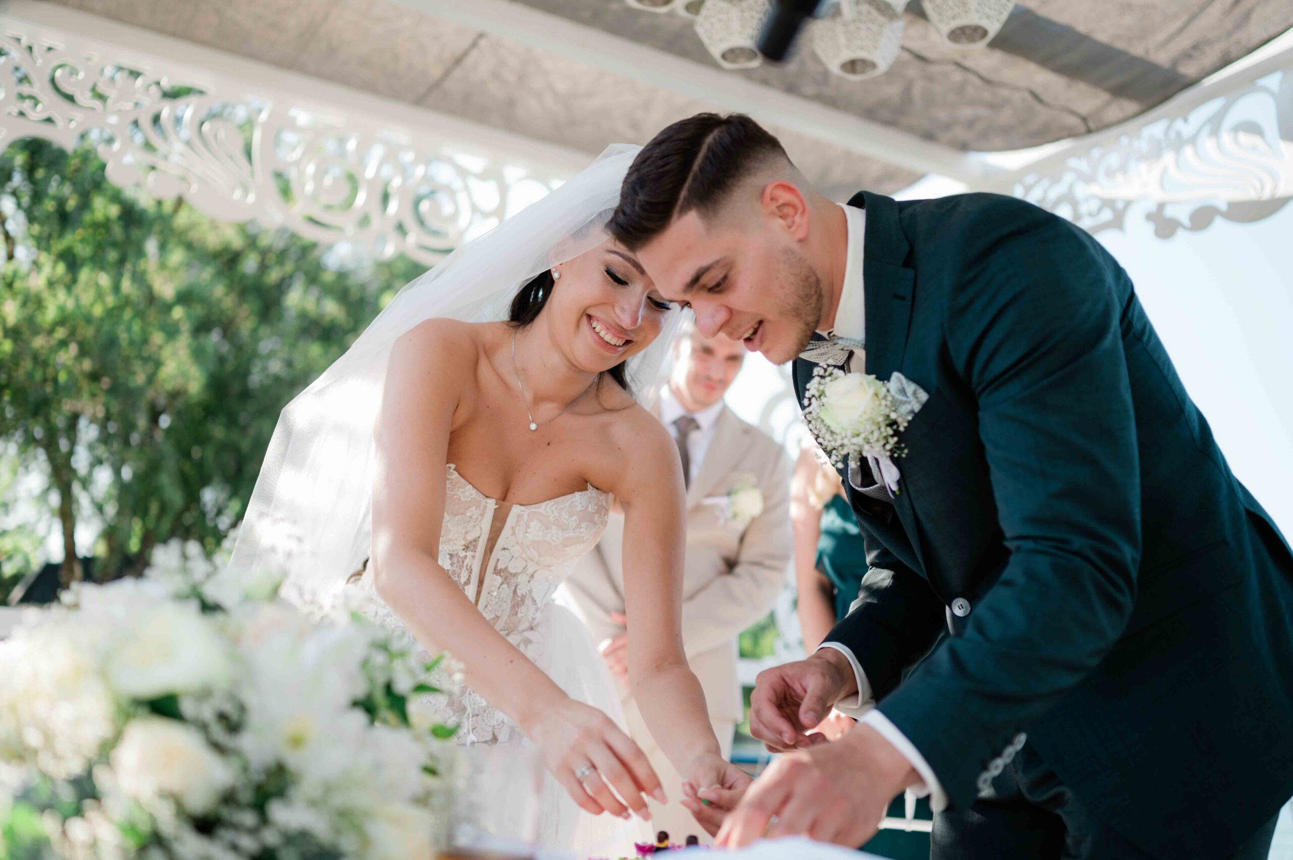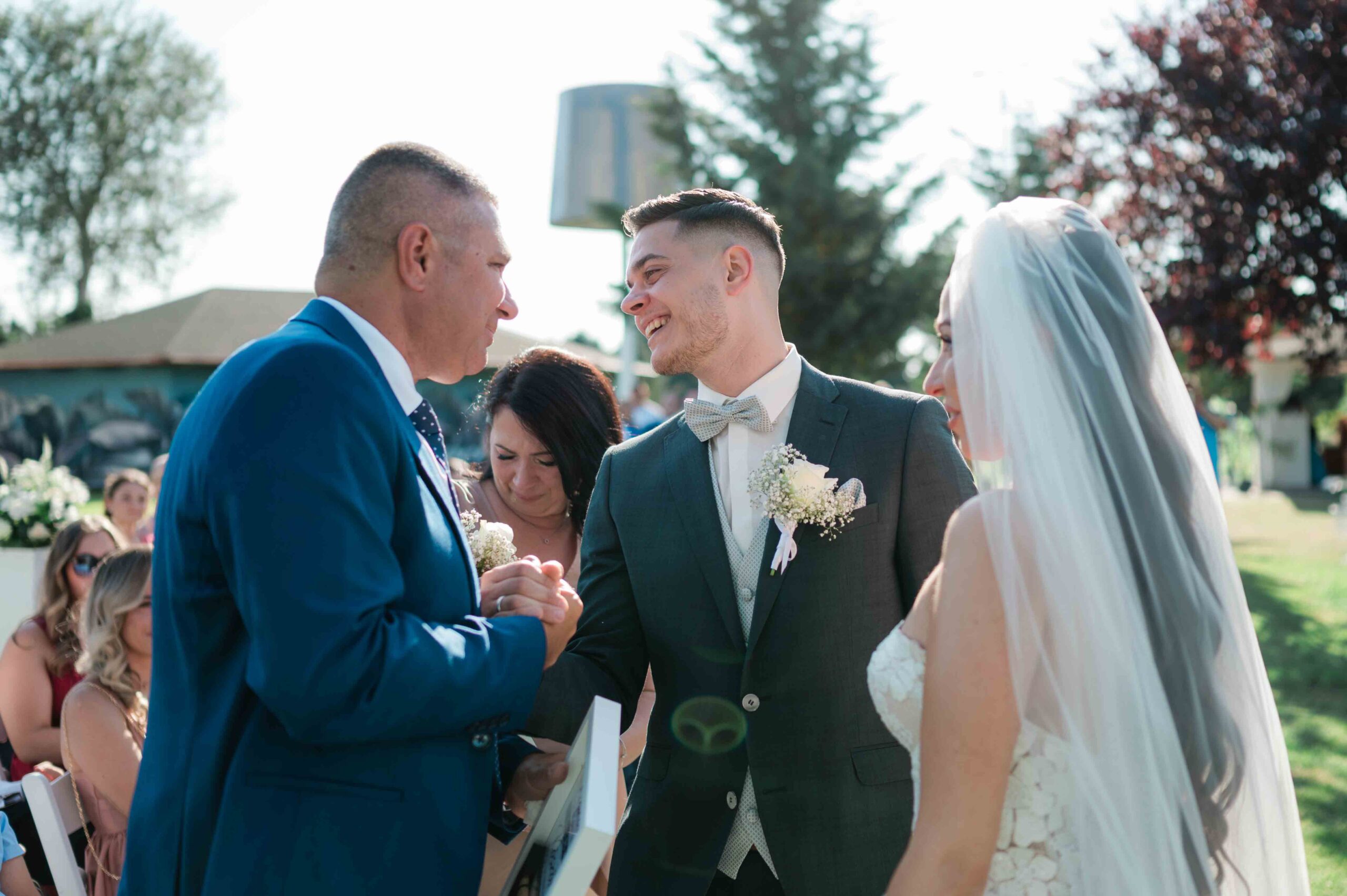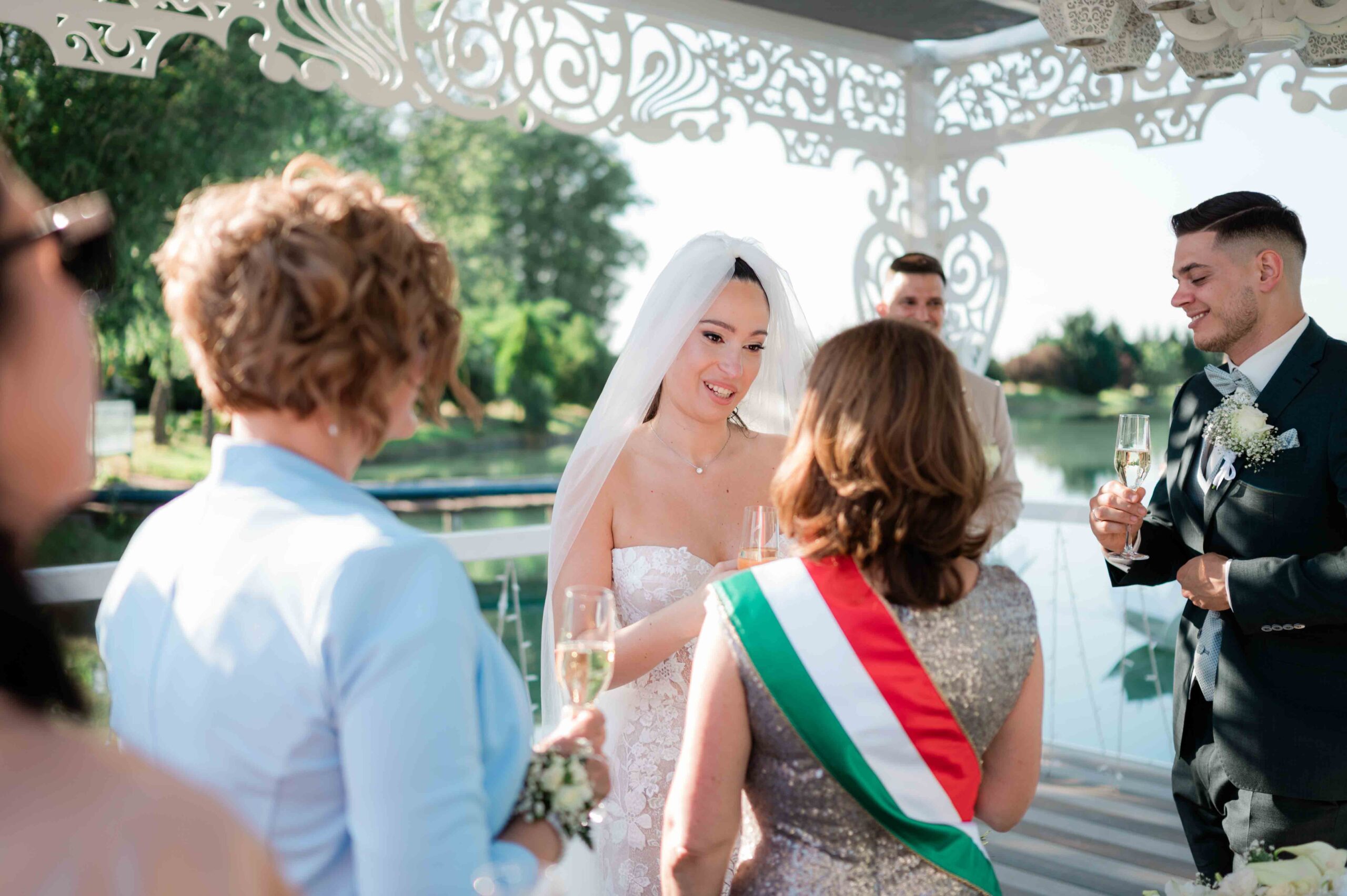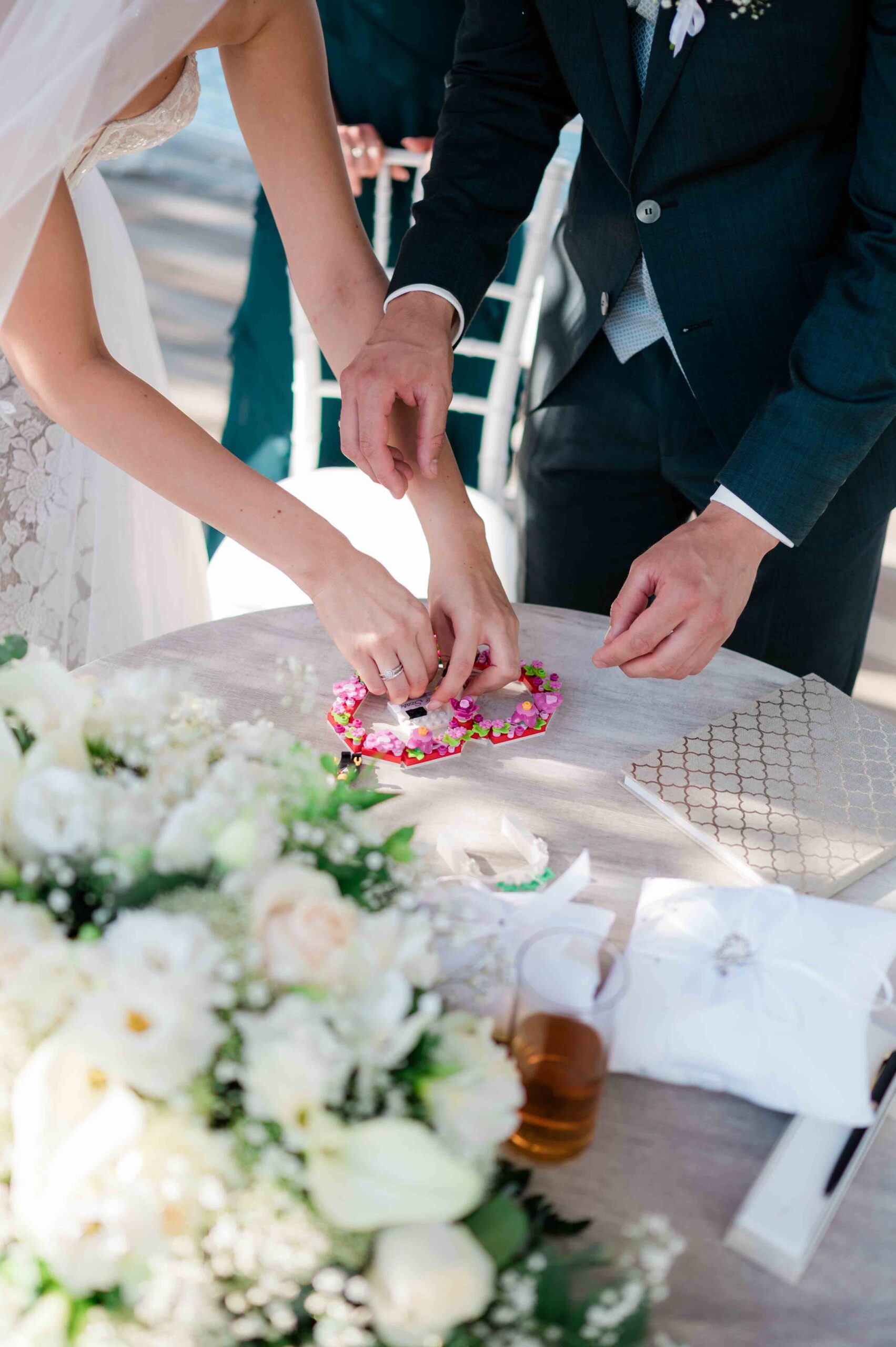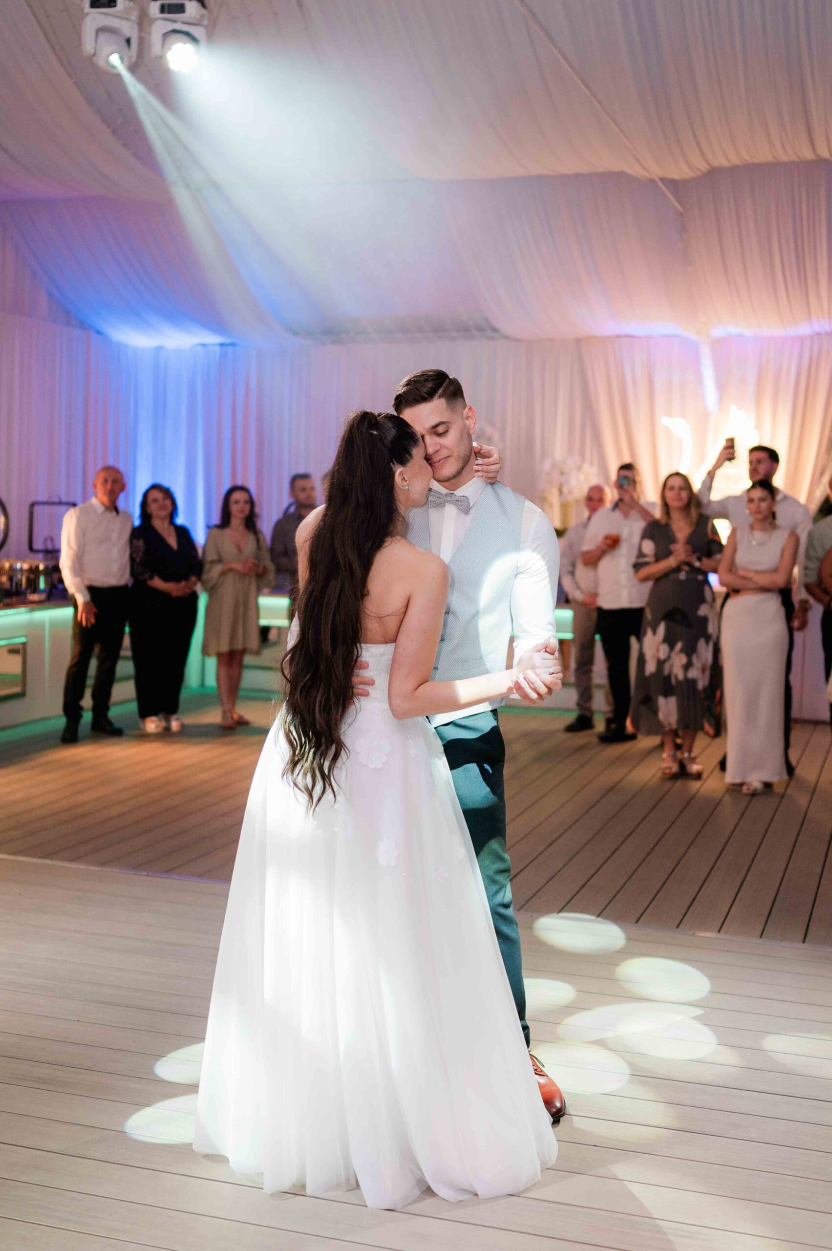 A ceremónia különleges környezetben zajlott, a Wedding Lake vízpartján. A vendégek klasszikus széksorokban helyezkedtek el, sokan közülük családtagok voltak. A szertartást végig élénk reakciók kísérték: taps, mosolyok, nevetések, amelyek jól visszaadták, mennyire közel áll egymáshoz ez a közösség.