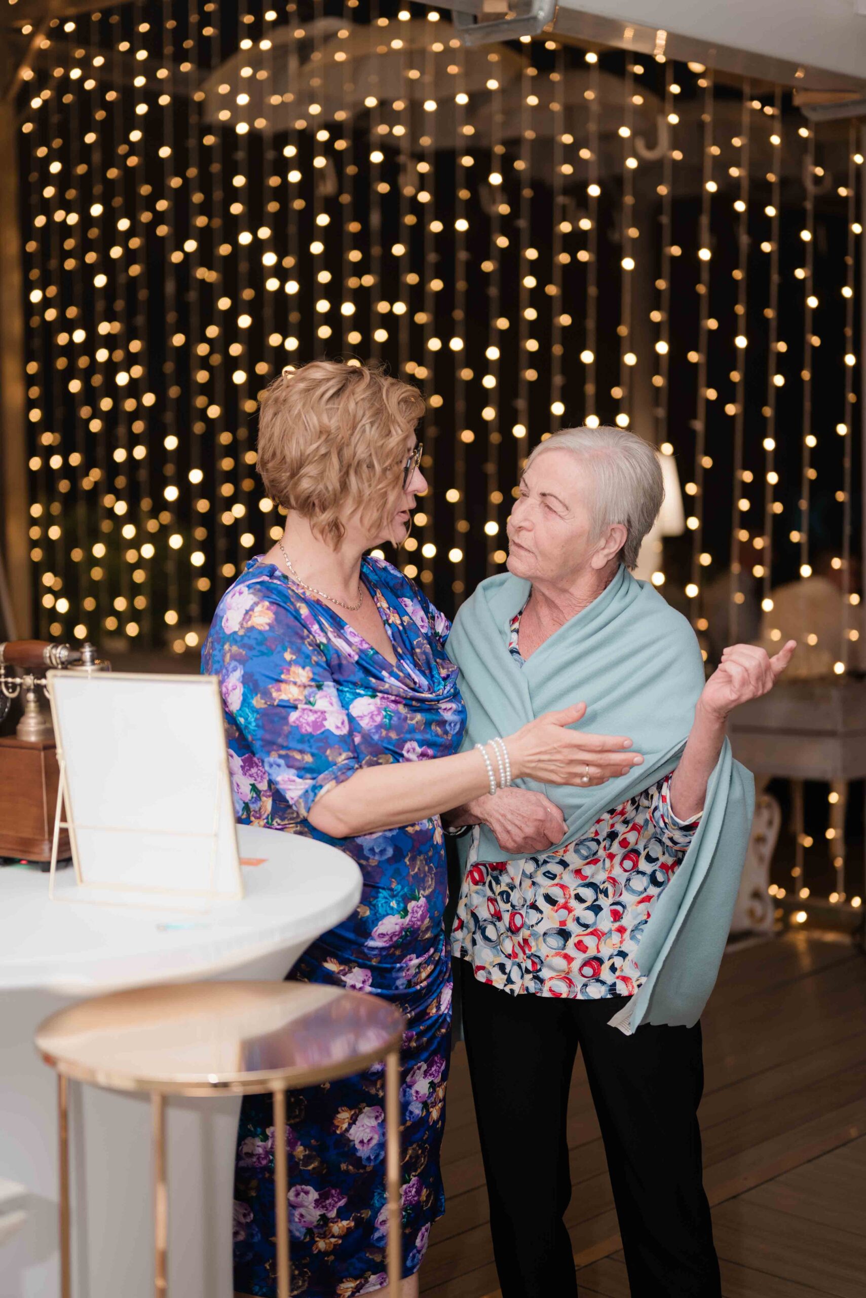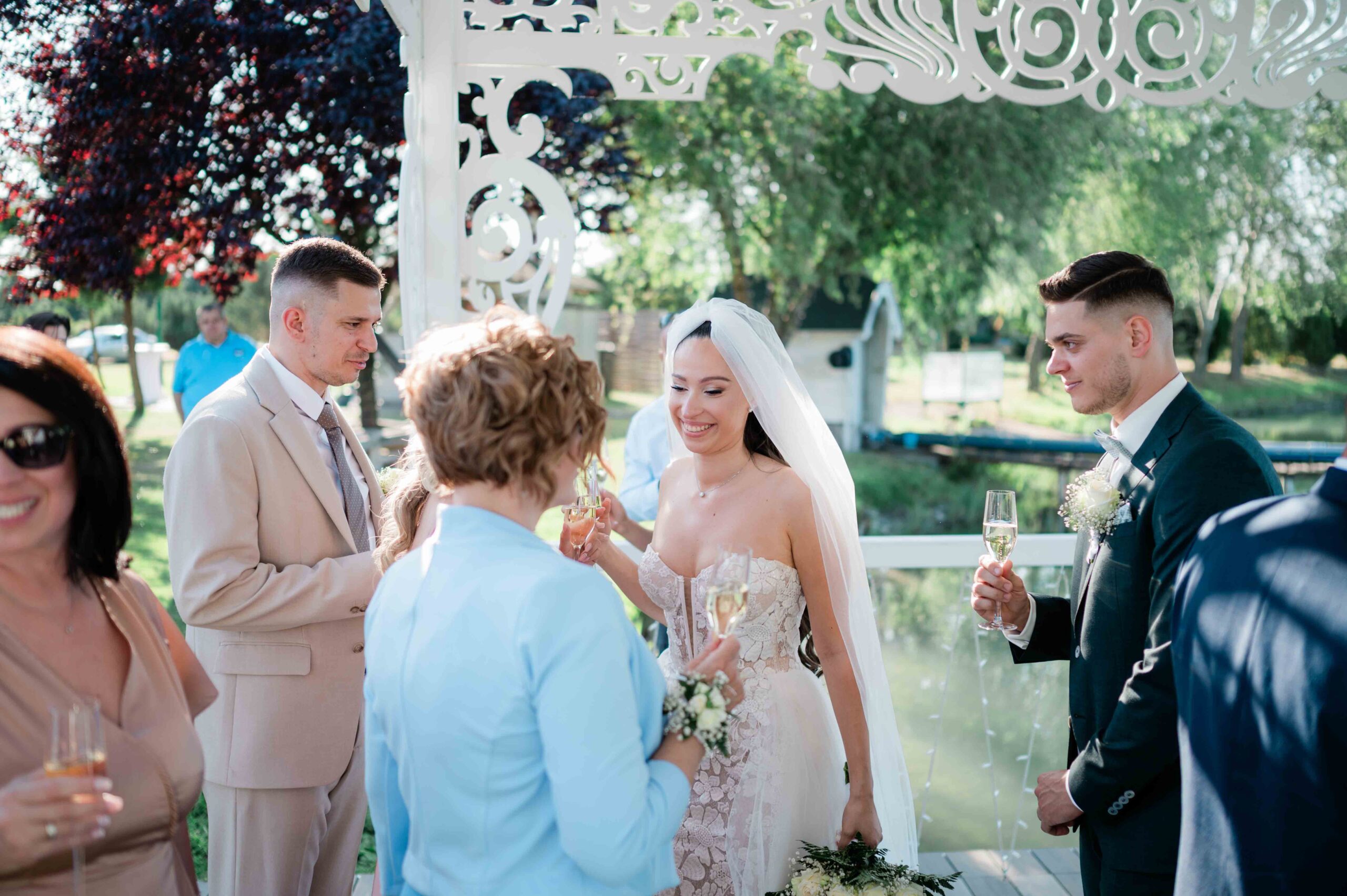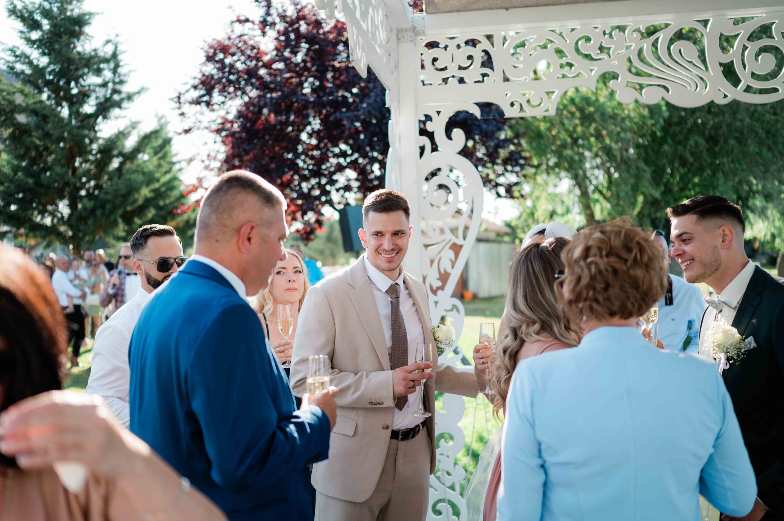 A ceremónia után gyorsan ünneplésbe fordult a hangulat. A beszélgetések élénkek voltak, a vendégek hamar csoportokba verődtek, sok volt az ismerős arc, az egymás vállára tett kéz, a közös nevetés. Érezhető volt, hogy ez egy összetartó társaság, ahol mindenki jól ismeri egymást.