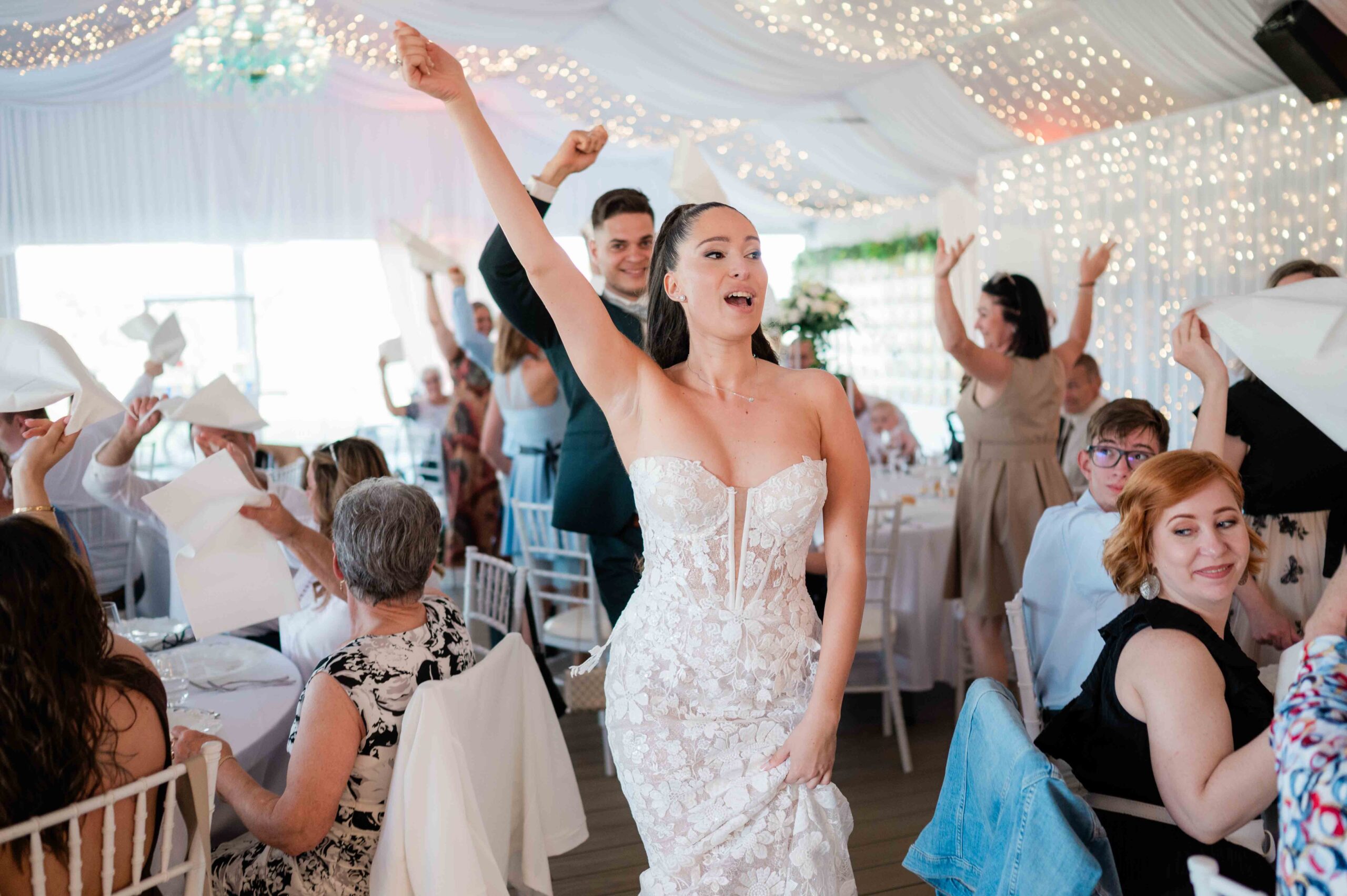 Gina és Szabi esküvője végig ezt a könnyed, vidám vonalat vitte. Olyan volt, mint egy hosszú, jókedvű együttlét, tele nevetéssel és lendülettel. Egy igazi „tini szerelem” hangulatú nap, ahol jó volt ott lenni, és jó volt velük együtt ünnepelni.